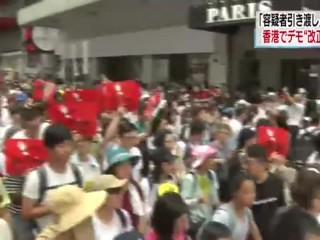 香港 容疑者引き渡し条例めぐり 中心部で大規模な反対デモ